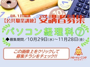 ●「パソコン経理科⑦」…訓練期間 令和8年1月6日~3月31日