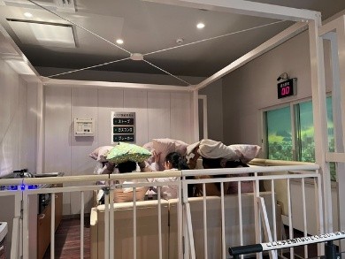 地震や防風などの災害の他、消火器操作などを体験。楽しみながら防火・防災について学びました。